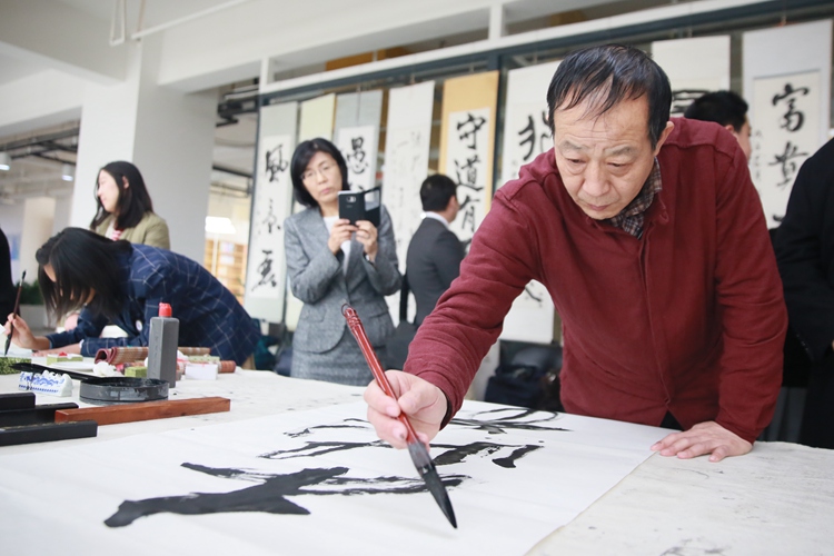 双方师生相继挥毫泼墨,与大家进行书法艺术的交流和互动