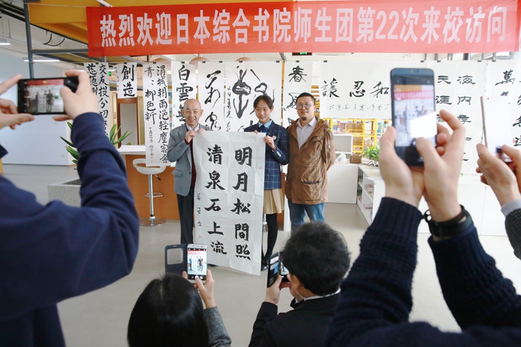 日本综艺书院是日本有名的书法艺术团体,此次来访的团长东山右彻是日本当代书法界代表人物。综艺书院连续二十二年对我校进行书法交流访问。