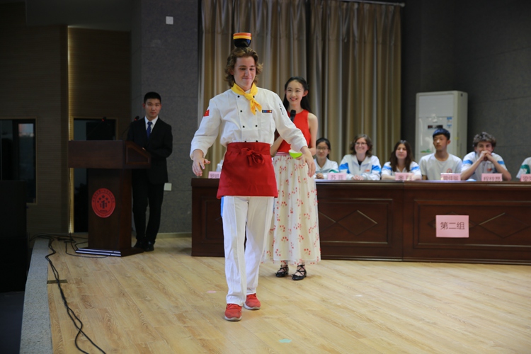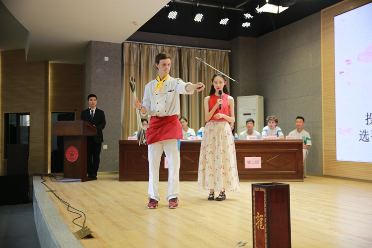 因为今年已经是中外知识竞赛的第三届,所以已经趋于成熟,同时也有了很多创新。值得一提的是,在游戏挑战环节,除了延续往年的用筷子夹乒乓球和说汉语/英语吹蜡烛之外,还增加了投壶和顶碗两种创新挑战。大家都知道,投壶是古代士大夫宴饮时做的一种投掷游戏,也是一种礼仪的象征。而顶碗是中国传统杂技节目。早在两千年前的汉代,中国就有顶碗表演。所以所增加的这两项游戏不仅让学生们体验了其中的乐趣,更让中外学生都体验了一把中国传统文化。