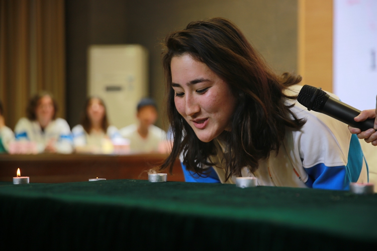 游戏挑战 留学生说汉语吹蜡烛 一分钟吹灭十根