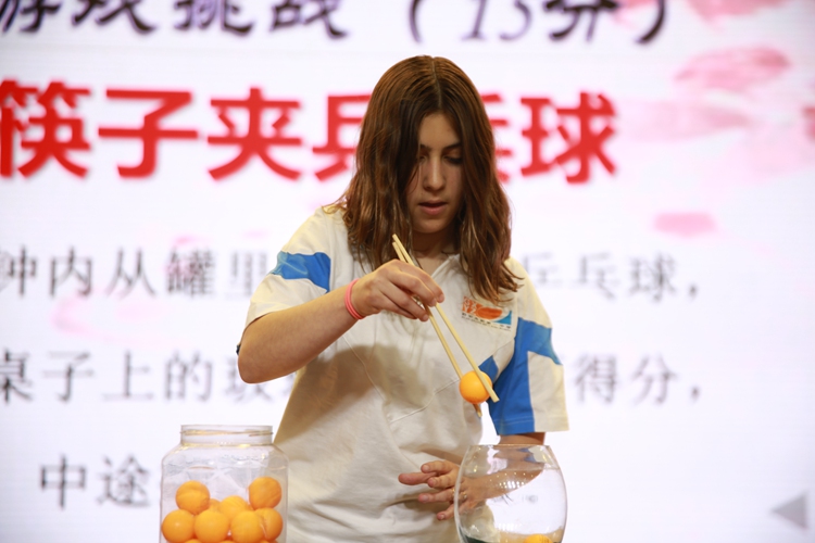 游戏挑战 筷子夹乒乓球 细细的筷子要夹起光滑的乒乓对中国人尚且不易 更别提留学生了