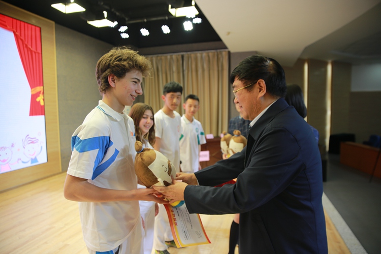 王凤进校长为知识竞赛冠军组颁发奖状及奖品